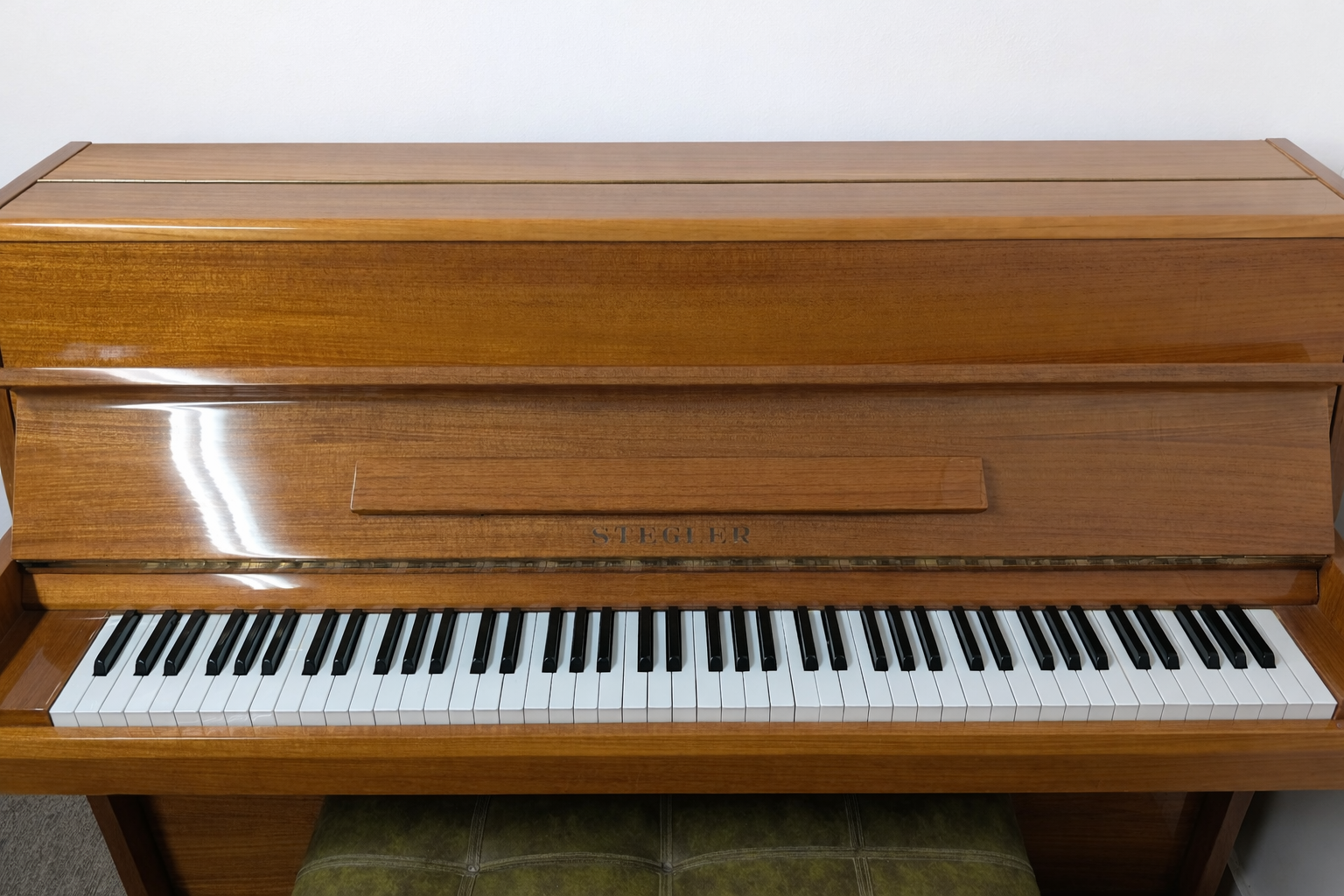 Superbe piano droit Stegler avec un meuble en bois au design classique et chaleureux. Un instrument idéal pour les débutants, les familles ou les pianistes amateurs à la recherche d’un piano fiable et esthétique pour la maison.